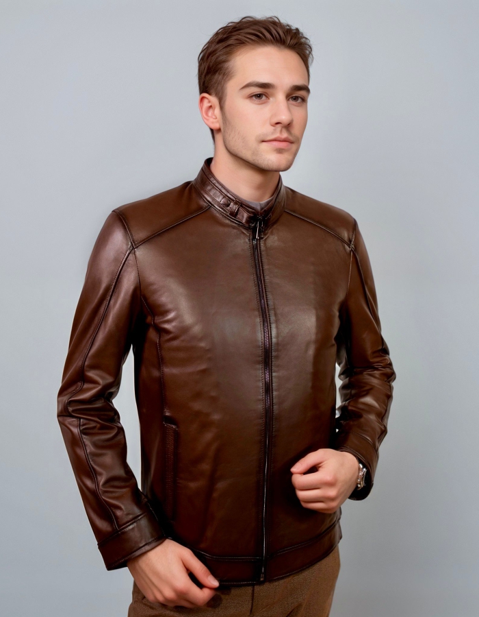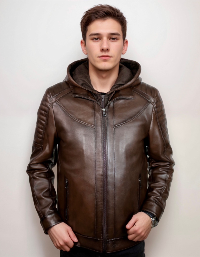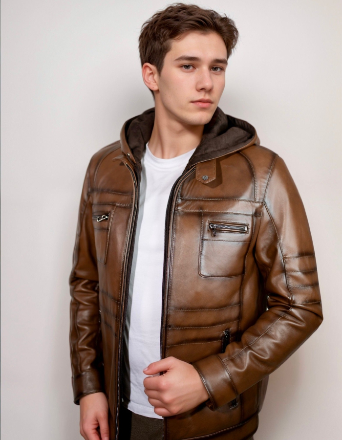 Erkek Kapüşonlu Deri Ceket - Fındık Kahve