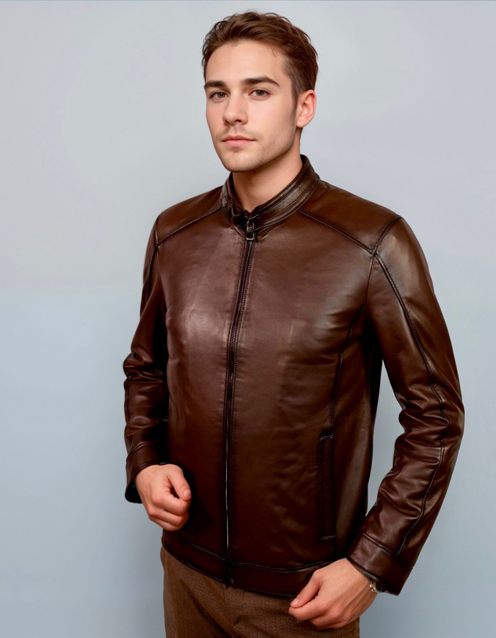 Erkek Spor Blazer Deri Ceket - Fındık Kahve