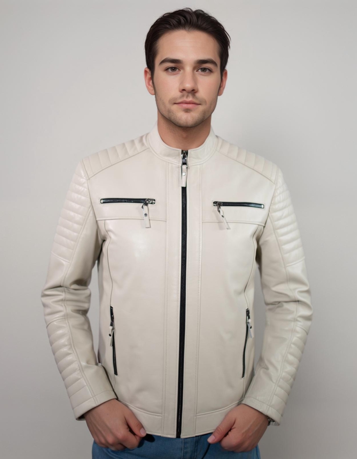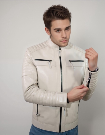Erkek Deri Ceket - Beyaz