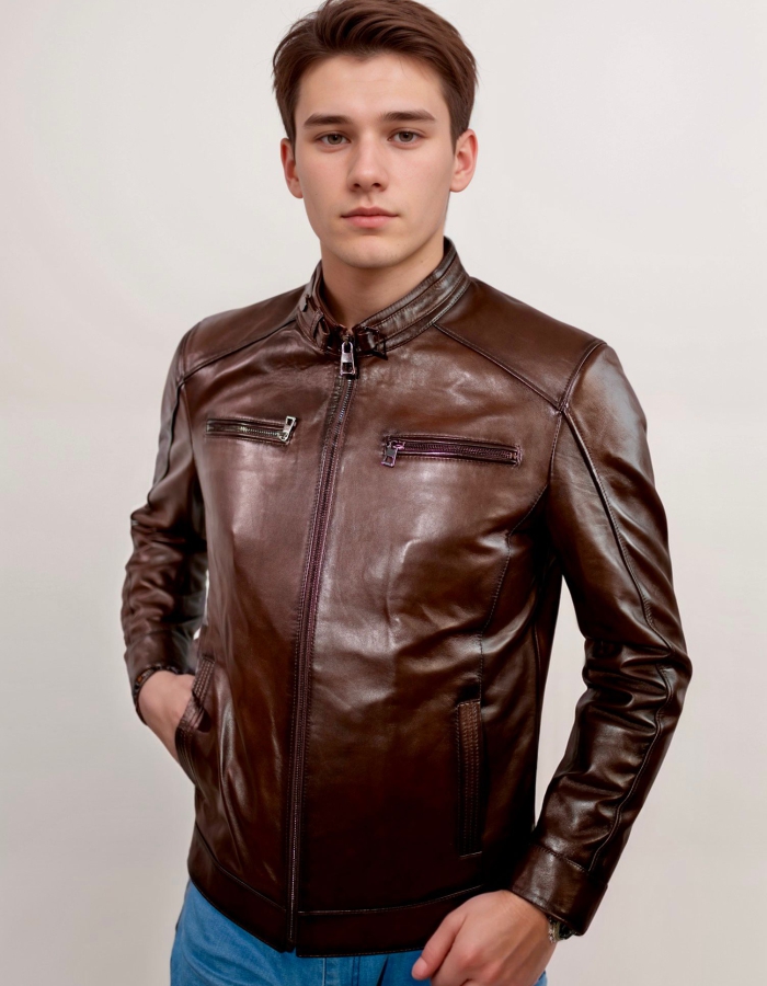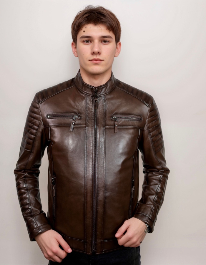 Erkek Kapüşonlu Deri Ceket - Fındık Kahve