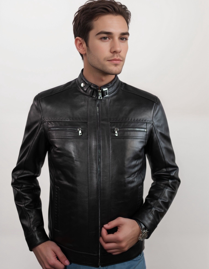 Erkek Kapüşonlu Deri Ceket - Siyah
