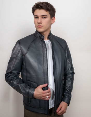 Erkek Deri Ceket - Gri